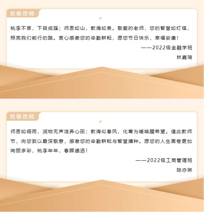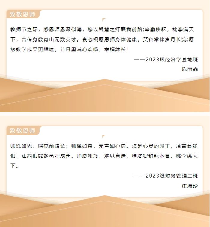 在第40个教师节之际,经济学院学子对每位老师的辛勤付出心怀感激,纷纷写下一封封信件,感念师恩之情。