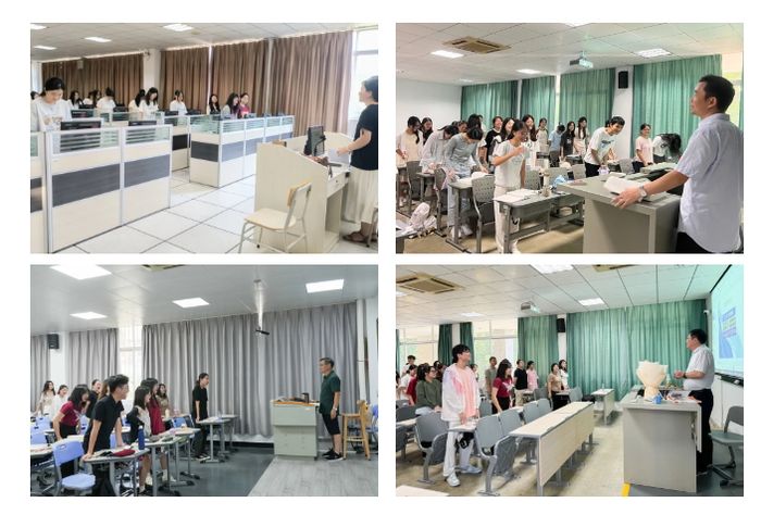 教师节当天,学院组织学生在课前全体起立向老师问好致敬,表达尊师情意,为老师献上简单而又难忘的节日问候。