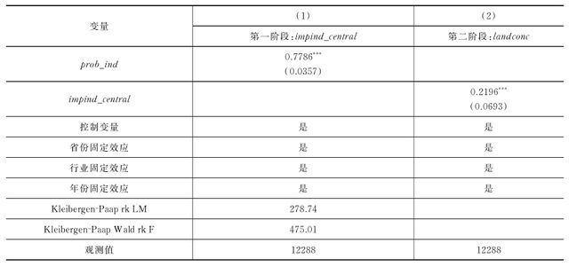 注:Kleibergen‑Paap rk LM 统计量的 P 值为 0.000;Stock‑Yogo Weak ID Test 10% 的临界值为 16.38。