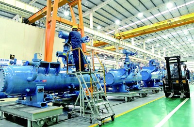 在福建雪人集团股份有限公司压缩机生产线上,技术工人在赶制出口欧洲的制冷压缩机订单。 新华社记者 魏培全摄