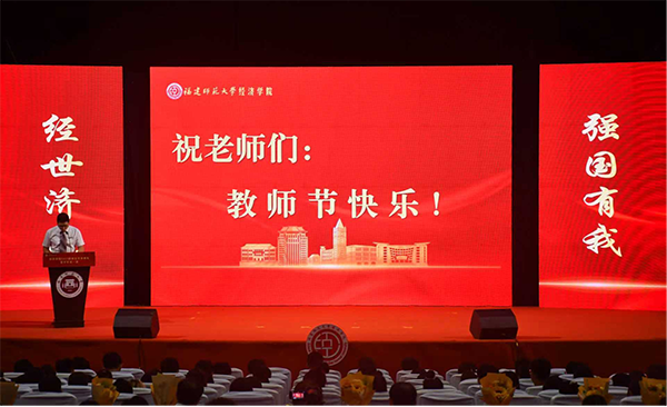 新生们合唱《最美的太阳》献礼教师节,并向现场的教师代表献花,表达节日祝福。最后,开学典礼在福建师范大学校歌中结束。