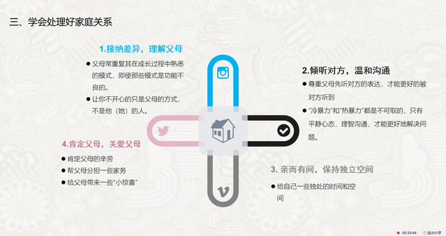 辅导员林晗晗老师也分享了自己的经验,就如何处理家庭关系提出建议,她表示,“身为大学生,当面对自己与父母间存在的矛盾的时候,一定要冷静下来,尝试站在父母的角度去解决‘代沟’的问题。”最后,班级开展了“一起约起来”活动,发布了“盟友召集令”,将拥有共同目标、困难、兴趣爱好的同学匹配成不同的团队,组成了运动锻炼小组、英语学习小组等队伍,共同克服困难、解决问题。
