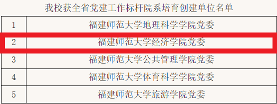 近日,省委教育工委公布了首批全省党建工作标杆院系、样板支部和“双带头人”教师党支部书记工作室培育创建单位名单。我院党委入选全省党建工作标杆院系培育创建单位,经济学系教师党支部、西方经济学教学团队党支部入选全省党建工作样板支部培育创建单位。