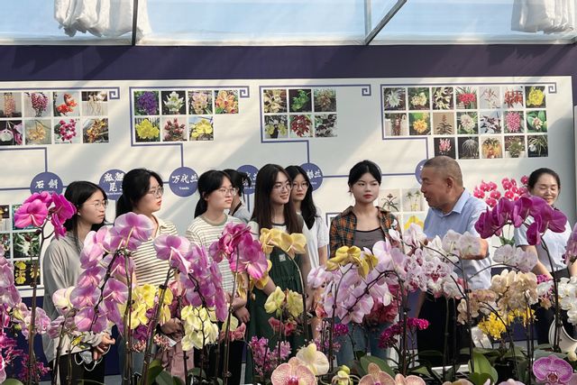 福建钜宝生物科技有限公司黄瑞宝董事长为实践队成员介绍兰花情况。周雨薇
