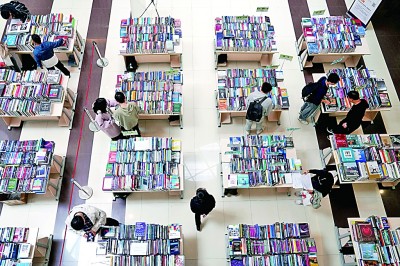 上海交通大学图书馆内,学生在书展上选书。新华社发