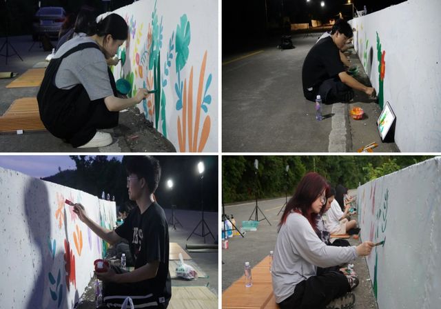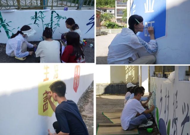 在墙绘工作现场,围观的村民们表达了他们对墙绘的期待。队员们一边与周边村民交流“取经”,一边不断优化墙绘方案,一笔一划、一刷一抹,十余天工作下来,村民们对实践队的专业墙绘工作赞不绝口,队员们也收获了满满的成就感,“能够用自己的专业所学为乡村增色添彩,这是一件让我感觉很有成就、很骄傲的事”,一位实践队队员说道,“希望在学习之余,能够参加更多类似的实践活动,这很有意义”。