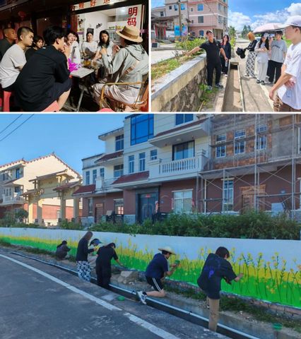 “应该再加点什么。”“然后跟这个更相近一点。”这支由福建师范大学光电与信息工程学院和经济学院联合组建的实践队正在石苍乡隔壁村开展墙绘工作。虽然队员们没有美术专业科班功底,但大家仍对墙绘工作充满了信心,凭借对墙绘艺术的兴趣,队员们充分调研隔壁村的特色文化、产业和自然资源,以墙绘为载体,展现乡村振兴的成果。