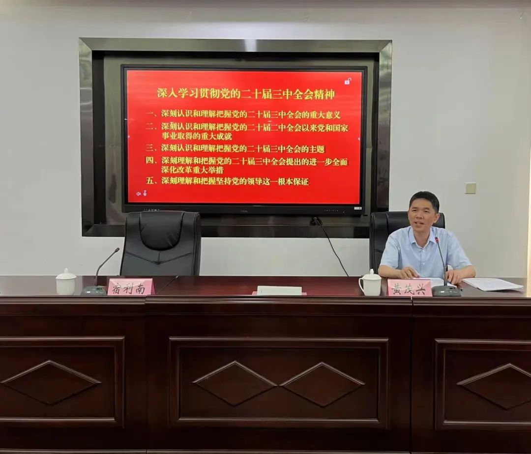 黄茂兴以《深入学习贯彻党的二十届三中全会精神》为题,从“五个深刻认识和理解把握”的维度,即深刻认识和理解把握党的二十届三中全会的重大意义、深刻认识和理解把握党的二十届二中全会以来党和国家事业取得的重大成就、深刻认识和理解把握党的二十届三中全会的主题、深刻理解和把握党的二十届三中全会提出的进一步全面深化改革重大举措、深刻理解和把握坚持党的领导这一根本保证,对全会精神作了系统宣讲和深入阐释。宣讲主题鲜明、内容丰富,为省残联广大党员深入理解把握党的二十届三中全会精神提供了精准指导。
