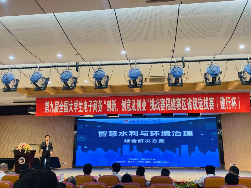 来自省内32所高校的2082支队伍,经过资格审核、校级赛的层层选拔,170支队伍进入福建省选拔赛,其中有76支队伍脱颖而出,进入最终的决赛环节。我院共有6支队伍入围,并在激烈角逐中获得特等奖1项、一等奖1项、二等奖2项、三等奖2项。《智慧水利与环境治理综合解决方案》(团队成员:鲍春洲、邱李彬、章露兮、张佳第、史祺桢)获特等奖;《煌逸文创》(团队成员:章羽茜、廖欣媛、朱涵璐、唐圣宇、况雪琴)获一等奖;《传统电子商务与社交电子商务模式结合下的茶》(团队成员:邹少帆、张卉、曹淑娴、廖晨旭)、《激光光镊拉曼光谱循环肿瘤细胞筛查系统》(团队成员:杨玉颖、徐永亮、刘建松、邢钰炜、潘灵洁)获二等奖;《电梯安全智慧终端》(团队成员:张译匀、王江铭、谢智鑫、陈双茹、郭晟)、《暖阳智慧养老》(团队成员:张洁、林豪杰、杨鑫、陈健胜、李念璋)获三等奖。