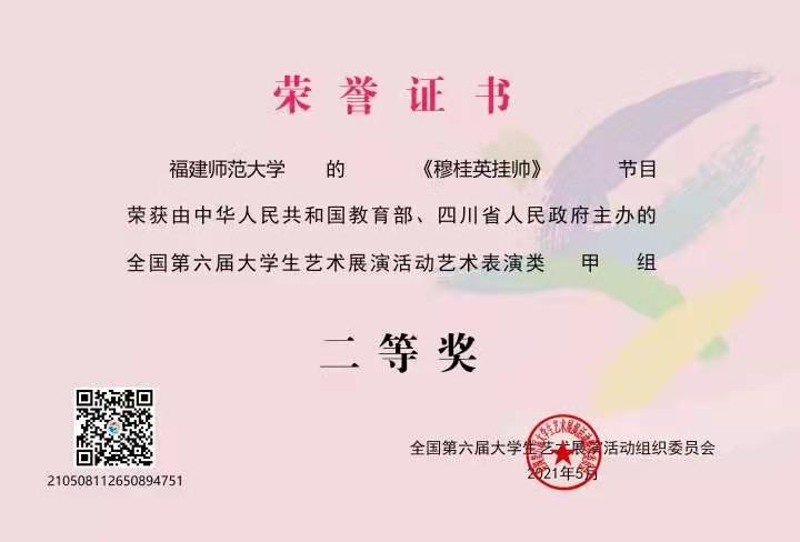大学生艺术展演(大艺展)是由教育部主办的我国目前规格最高、规模最大、影响最广的大学生展示平台,每三年举办一次。本次展演分为艺术表演类、艺术作品类、大学生艺术实践工作坊、高校美育改革创新案例四大类。经过教育部专家组的评审,我院选送的京剧作品《穆桂英挂帅》最终荣获全国第六届大学生艺术展演活动艺术表演类甲组二等奖。