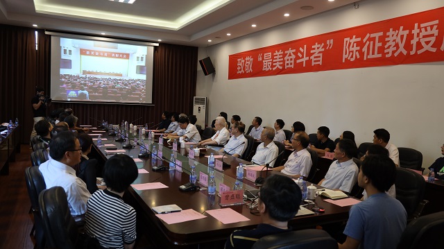 福建省社会科学院原院长严正、福建师范大学原党委副书记廖福霖、福建农林大学原副校长张春霞、福建省委党校产业发展研究院院长陈明森、中国建设银行福建省分行国际业务部总经理陈朝阳、福建省社科院《福建论坛》杂志社经济编辑陈燕、我院原院长郭铁民、李建建,他们在发言中深情回顾了陈征教授带头创建政治经济学硕士点、博士点和理论经济学博士后流动站,打造教学科研梯队,推动我校理论经济学从无到有、从小到大、发展为福建省高峰学科的动人历史。他们纷纷表示,要把陈征教授的高尚精神与奋斗品格转化为建功新时代的实际行动,不忘初心、牢记使命、永远奋斗,努力为加快建设新福建、实现“两个一百年”奋斗目标作出新的更大贡献。