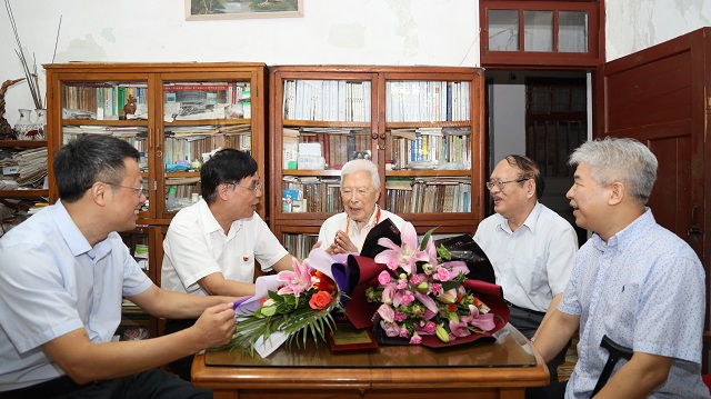 座谈会开始前,校领导到家中亲切看望慰问陈征教授,祝贺陈老荣获全国“最美奋斗者”称号。