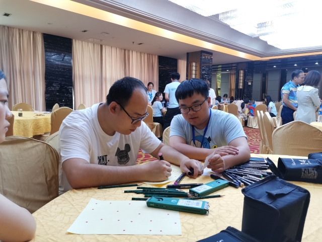 我院志愿者参与协助“融合中国网络年会”的自倡导论坛环节,自倡导论坛以“心青年”为主体展开,旨在为心智障碍青年群体提供一个能够自主发声的平台。活动前期,志愿者们提前布置会场,并有序地引导论坛参与者有序入场。活动过程中,特教老师为“心青年”们分发心愿便利贴,让他们写下自己的梦想,志愿者们引导“心青年”思考如何实现这些梦想,并鼓励他们将自己的梦想贴在“梦想树”上。志愿者悉心关注“心青年”情况,及时安抚情绪激动的“心青年”,通过转移他们的注意力缓解其紧张与不安的情绪,并在相处中与“心青年”们建立了深厚的友谊。活动结束后,志愿者们在特教老师的协助下,陪伴“心青年”进行制作水晶画与手工、涂色游戏等一系列活动。活动在欢快和谐温馨的氛围中落下帷幕。