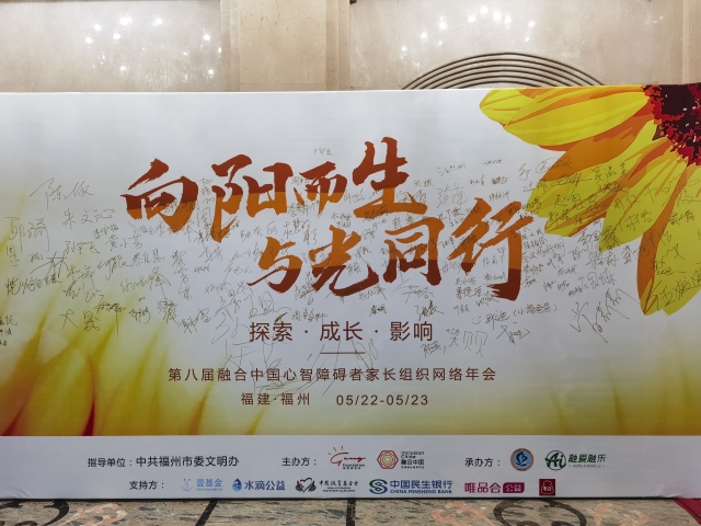 5月22日至23日,融爱融乐心智障碍者家庭支持中心在福州鼓楼区索菲斯屏山酒店举办了“向阳而生,与光同行——融合中国网络年会”活动,我院50名志愿者积极参与本次年会活动。