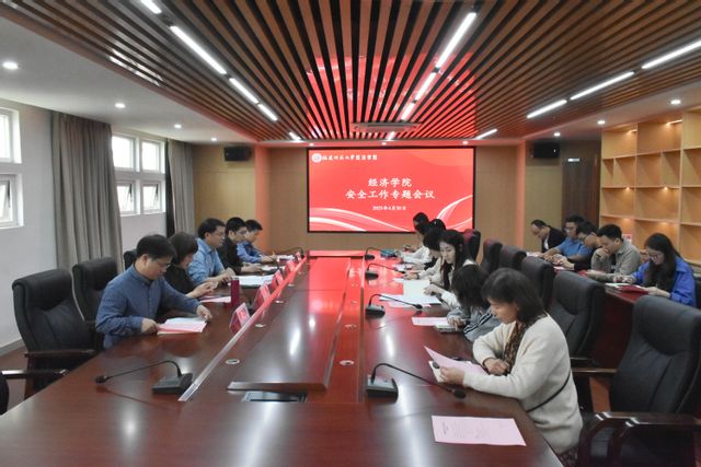 4月30日,经济学院召开安全工作专题会议。院领导俞建群、黄瑾、叶龙祥、戴双兴、鲁保林,各科(室)负责人,全体辅导员参加会议。会议由学院党委副书记叶龙祥主持。