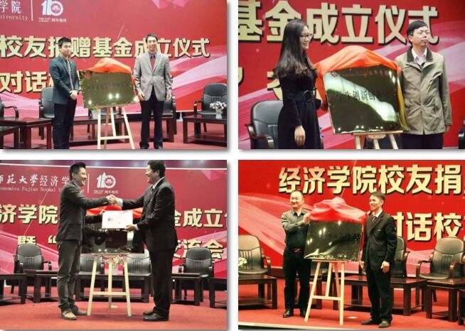 紧接着,李尚彬先生与校工会林子华常务副主席、林丽蓉女士与黎元生副院长、吴剑飞先生与赵立新书记、郑旺泉先生与黄茂兴院长分别上台为“困难家庭学生资助基金”、“学生创新创业基金”、“退休教师关爱基金”以及“青年教师成长基金”揭牌,并颁发我院的捐赠证书。至此,基金成立仪式圆满结束。