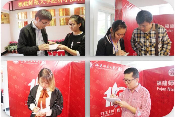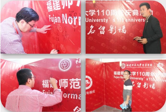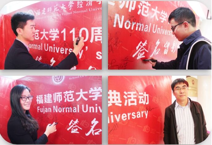 来自不同届别的校友们怀着对母校的赤诚之心欢聚一堂,他们愉快地沟通交谈着,并在签名墙上留下自己酣畅健实的字迹,抒发着重回母校后难以言表的激动之情,当翻阅学院和学科画册的时候,他们无不对经院的发展赞许连连。