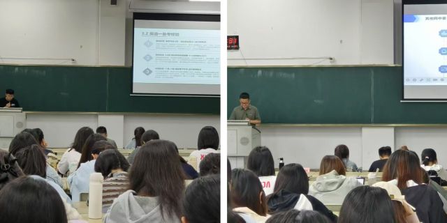 经验分享环节,张天瑶同学从考研备考经验入手,讲解了数学、英语、政治、专业课等方面的学习经验和心得,并着重探讨了考研心态调整的问题,为同学们考研可能面对的压力以及如何舒缓压力提供了很好的借鉴。何伟滨同学根据自身备考经验,分享了如何分析考研内容、如何择校、需要留意专业课给分情况等,为考研的同学“指点迷津”。肖奕轩同学则是从就业方面入手,以自身成功被银行录取的经验,详细讲解银行招聘流程,分享了注意事项、网申要点、笔试考点和面试技巧等,为准备就业的同学提供了宝贵经验。