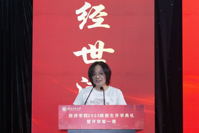 在庄严肃穆的国歌声中,开学典礼拉开了帷幕。院长黄瑾代表学院向386名本科新同学和227名硕士研究生、10名博士研究生新同学表示热烈的欢迎!她对全体新同学提出三点希望:一是分数之外,当有“星辰大海”的求知。鼓励同学们跳出“绩点困局”,以陈征教授“富国安民”的追求为榜样,探寻分数之外的求知价值;二是答案之上,更需“主动思考”的锤炼。鼓励同学们在人工智能时代积极培养探究精神,从被动接受转向主动探索,鼓励在大学阶段尝试新鲜事物挖掘潜能;三是平凡之中,尤要“信念为灯”的坚守。鼓励同学们涵养执着与担当,学习李建平教授等学者的坚守精神,以信念和奋斗成就不凡。