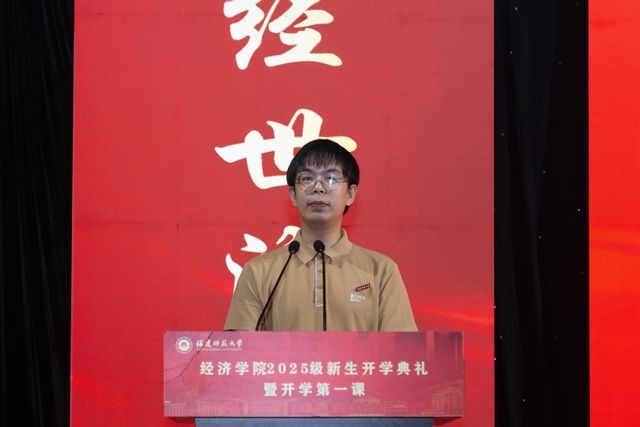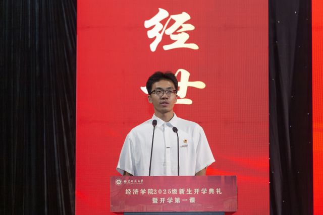 老生代表、国家奖学金获得者、2023级经济学(国家人才培养基地)陈芷涵同学回顾自身大学经历,勉励学弟学妹们善用学院资源平台,夯实专业基础知识,在理论学习中追寻真理之光,在知行合一中锤炼本领,在不断探索中激发潜能。