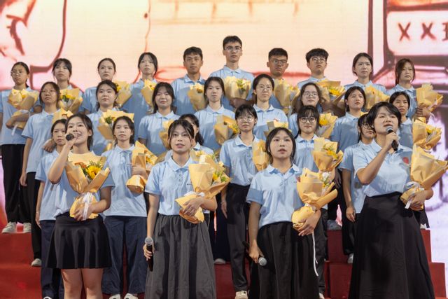时值第41个教师节,新生们合唱《最美的太阳》献礼教师节,并为现场的教师代表献上花束,表达了对教师辛勤付出的感恩之情,传承中华民族尊师重道的传统美德。
