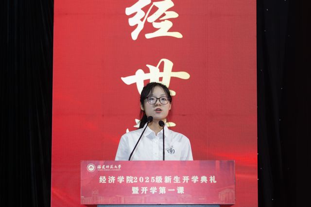 新生代表、2025 级经济学专业本科新生林若珂、国际商务专业硕士研究生周志博表示将在百年学府中汲取奋进力量,学好专业知识,练好过硬本领,担当起“经世济民”的初心和使命。