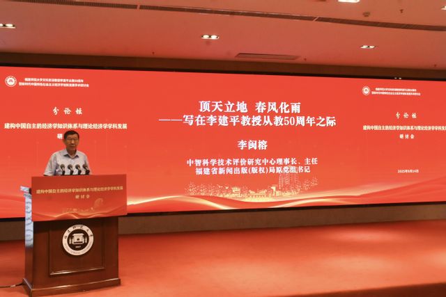 为更好地传承弘扬李建平教授的学术思想和师德风范,凝聚专家学者、学界同仁的智慧力量,深化对新时代中国特色社会主义政治经济学的理论研讨,共同致力推动建构中国自主的经济学知识体系,加快推动理论经济学学科发展,9月14日下午,由福建师范大学主办,全国中国特色社会主义政治经济学研究中心(福建师范大学)、福建师范大学经济学院承办的分论坛——“建构中国自主的经济学知识体系与理论经济学学科发展研讨会 ”在宏达厅举行。来自中国社会科学院、中国人民大学、复旦大学、辽宁大学、吉林财经大学、山西财经大学、中智科学技术评价研究中心等全国百余名知名专家学者参会交流。