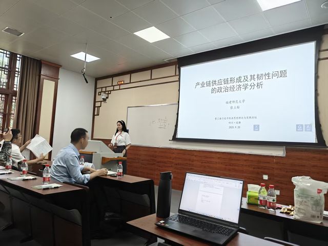 张立榕副教授在平行论坛中汇报的题目是:《产业链供应链形成及其韧性问题的政治经济学分析》。她指出,产业链供应链的稳定高效是新质生产力与中国式现代化的关键。其形成源于分工深化与交换扩展,但资本循环中断易致再生产脆弱。生产社会化要求协同,而私有制导致分散分化,削弱韧性。中国方案强调公有制主体、计划调节与使用价值导向,探索超越资本主义矛盾的韧性发展路径。