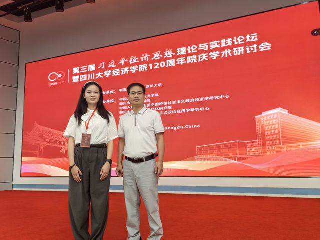 由中国人民大学、四川大学共同主办,中国人民大学经济学院、四川大学经济学院、中国人民大学全国中国特色社会主义政治经济学研究中心、四川大学中国式现代化研究院、四川大学中国特色社会主义政治经济学研究中心共同承办的第三届习近平经济思想理论与实践论坛暨四川大学经济学院120周年院庆学术研讨会于2025年9月20-21日在四川大学召开。会议主题为“深入学习《习近平经济文选》第一卷,全面深化改革、扎实推动高质量发展,科学谋划‘十五五’时期经济发展”。我院副院长戴双兴教授、青年教师张立榕副教授受邀参会。