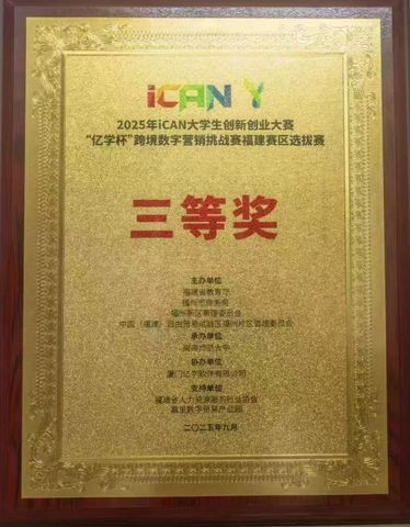 近日,2025年iCAN大学生创新创业大赛“亿学杯”跨境数字营销挑战赛福建赛区决赛在闽南师范大学落下帷幕。我院学子凭借扎实的专业功底与出色的实战能力,荣获经管赛道省级三等奖。