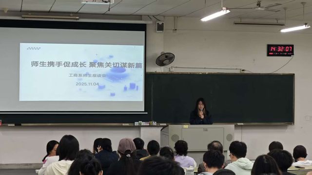 11月4日,工商管理系在致广楼109教室成功举办了以“师生携手促成长,聚焦关切谋新篇”为主题的师生座谈会。本次座谈会由24级学生杨静宇主持,工商管理系全系教师、23级与24级学生以及智能商务与数智营销微专业学生参加,旨在深化师生交流,精准回应学生关切,推动专业建设与发展。