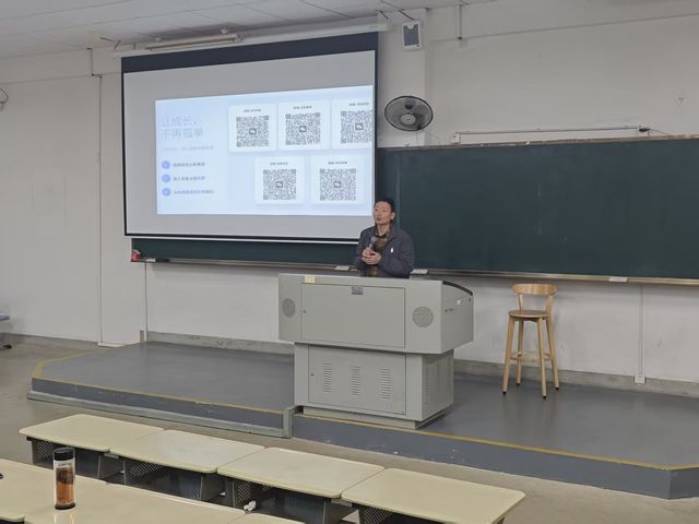 在互动交流环节,师生围绕会前调研中凝练的三大核心问题展开深度交流:未来规划、学以致用和资源获取。唐杰老师引导同学们从个人兴趣、能力特长等维度进行系统评估,并鼓励大家树立专业自信;林孔团老师结合三创赛等一类赛的指导经验,指出“干中学”是关键,生动阐释了如何将课程知识点转化为解决实际问题的能力;林翊老师则引导同学们从目标出发,逆向规划资源获取路径,并鼓励同学们多与老师沟通。互动环节气氛热烈,同学们踊跃提问,老师们倾囊相授,精准的解答与实用的建议赢得了阵阵掌声。