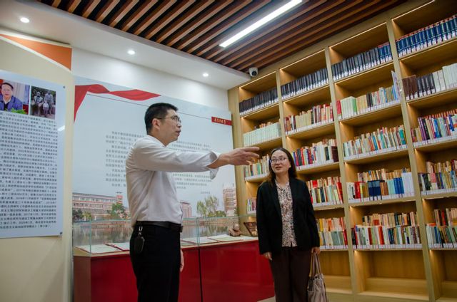 叶龙祥对胡玲莉一行到访表示热烈的欢迎,并陪同参观李建平书屋与我院学术交流中心。叶龙祥详细介绍了我校原校长李建平教授将毕业珍藏的数万册图书无偿捐赠给学校,“书藏于私,不如藏于公”博大胸襟的精神事迹;介绍详细了我院在办学历史、科学研究、学科特色、人才培养等方面取得的显著成果。