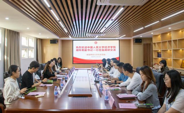 11月16日,中国人民大学经济学院党委副书记、纪委书记胡玲莉一行莅临我院调研交流,我院党委副书记、纪委书记叶龙祥,辅导员及学生代表陪同调研,并在旗山校区人文楼3楼第二会议室进行座谈交流。
