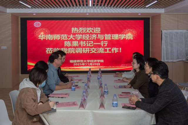 11月20日,华南师范大学经济与管理学院党委书记陈果、院长助理彭连清等一行5人莅临我院共建交流,研讨全国党建工作标杆院系、样本支部、“双带头人”教师党支部书记工作室先进经验。我院党委书记俞建群、党委副书记叶龙祥、党委委员叶琪等参加座谈。
