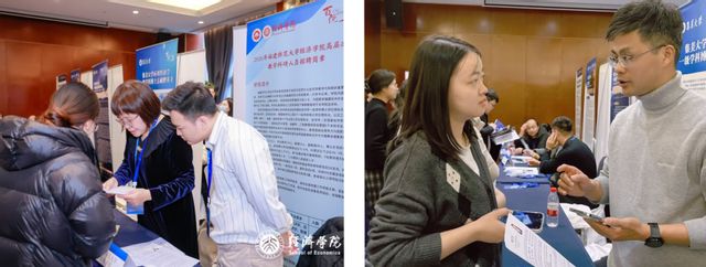 12月13日下午,论坛举办“百所经院人才招聘会”。招聘会吸引了海内外3000余名博士生、全国130所高校及科研机构参加,现场人流穿梭,交流氛围热烈浓厚。黄瑾院长、张养明老师与吴武林老师就岗位性质、支持条件与发展路径等方面与现场博士生进行面对面交流,一共收到30余份简历。本次招聘会是学院主动对接人才市场、优化引才机制的积极行动,不仅为学科发展精准储备青年力量,更是学院对外展示学术平台与发展生态的窗口。