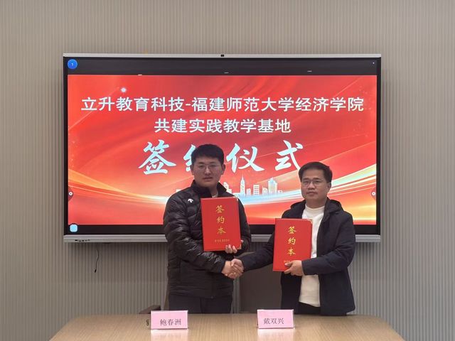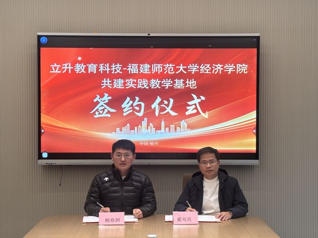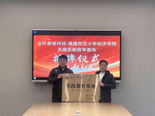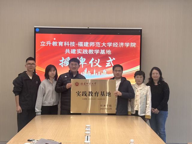 为推动产教深度融合、创新人才培养模式,2025年12月18日下午,我院副院长戴双兴教授、工商管理系主任王珍珍教授一行赴福建立升教育科技集团,举行实践教学基地签约授牌仪式。福建立升教育科技创始人鲍春洲代表企业签约授牌。福建立升教育科技联合创始人张思怡、B端业务负责人林豪杰、阿里巴巴钉钉高级方案解决专家杭远出席仪式。