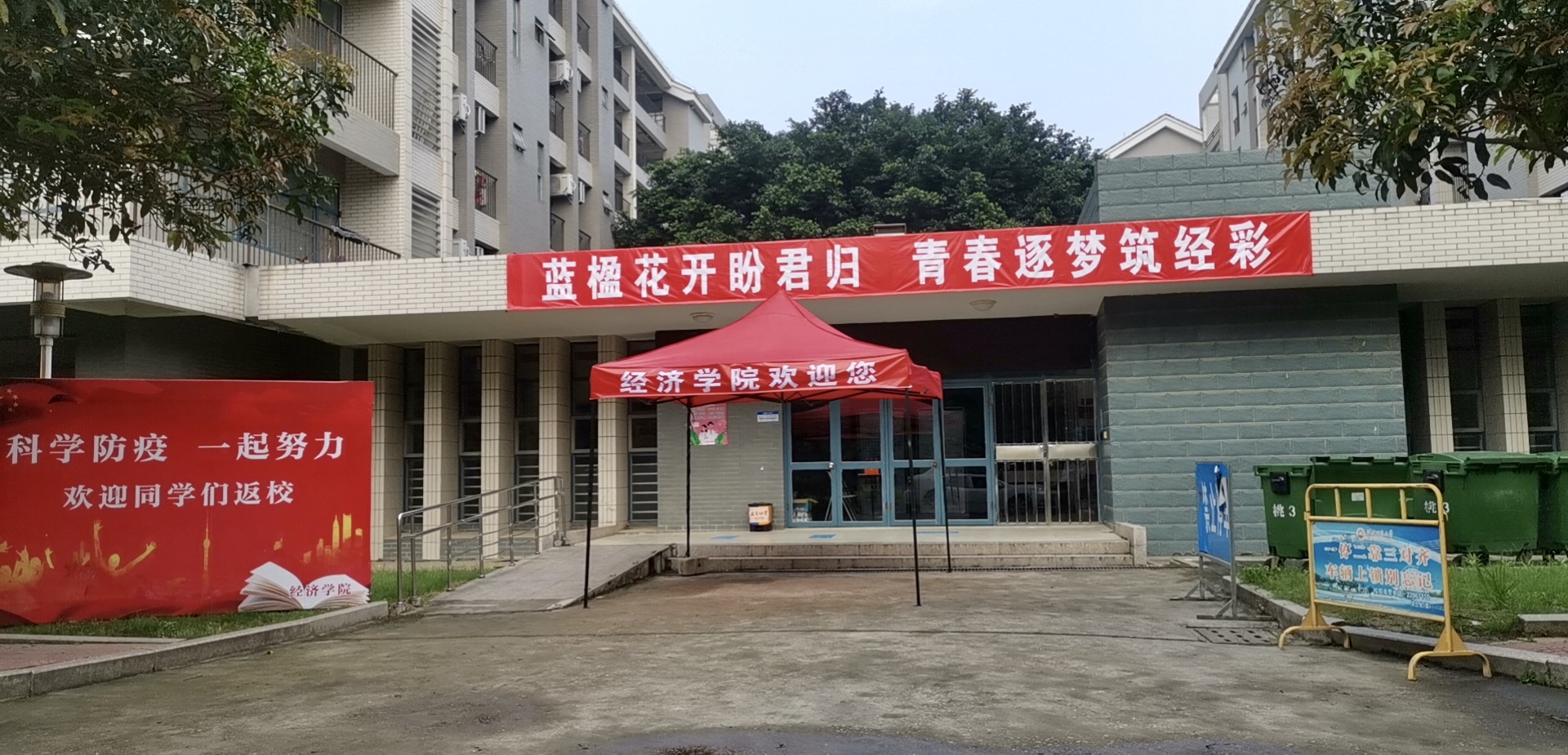 “蓝楹花开盼君归,青春逐梦筑经彩” “欢迎同学们返校”“进校园,戴口罩”等标语醒目又温暖。久别归来,老师们关切的问候、同学们熟悉的面孔,一系列严格又暖心的防控举措,令返校学子们倍感亲切,感慨万千。2020届金融学专业韦莉芹说“宿舍楼前的温馨的展板,大厅里辛苦忙碌的辅导员,物资齐全的爱心袋……每个人都在为防疫工作辛苦付出,为学子安全返校尽心尽力,回到经院大家庭的感觉真好。”2020届财务管理专业陈芳敏说“虽然受疫情影响,我们只能匆匆返校,但学院为我们精心准备的各项防疫物资为我们搭起了温馨的保护屏障。”虽然口罩遮住了他们的面容,但遮不住他们的笑颜。
