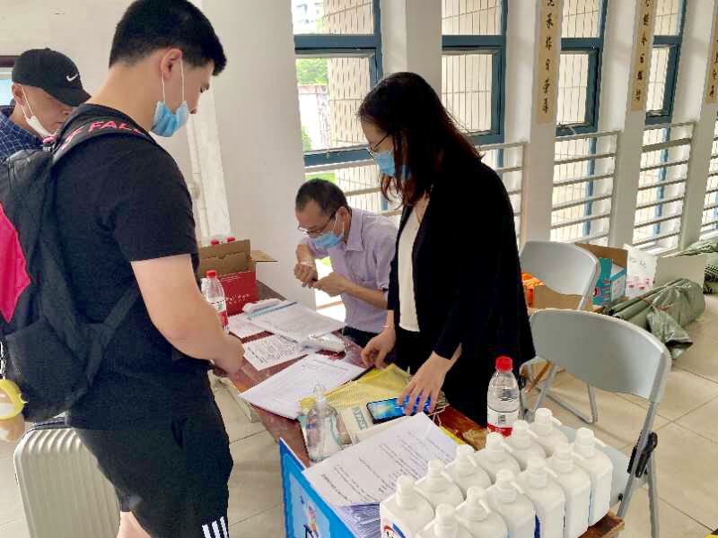 5月29日始,我院于桃苑3号楼、8号楼大厅设立身份核验登记处和体温检测点,按照设计的返校方案、严密的防护措施、细致的人文关怀来迎接2020届返校毕业生。学生在学校的安排下有序返回校内,我院值班教师依照学生返校工作流程,核验登记学生身份,进行体温检测,向学生发放防疫物资,细心讲解相关防护守则及物资使用规范,仔细叮嘱学生佩戴口罩,注意个人卫生和疫情防护。