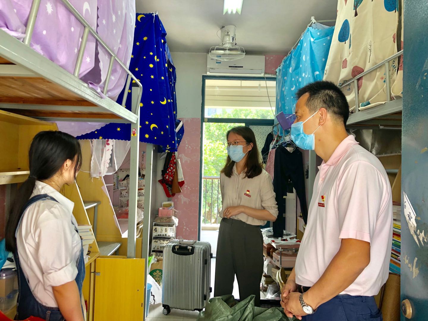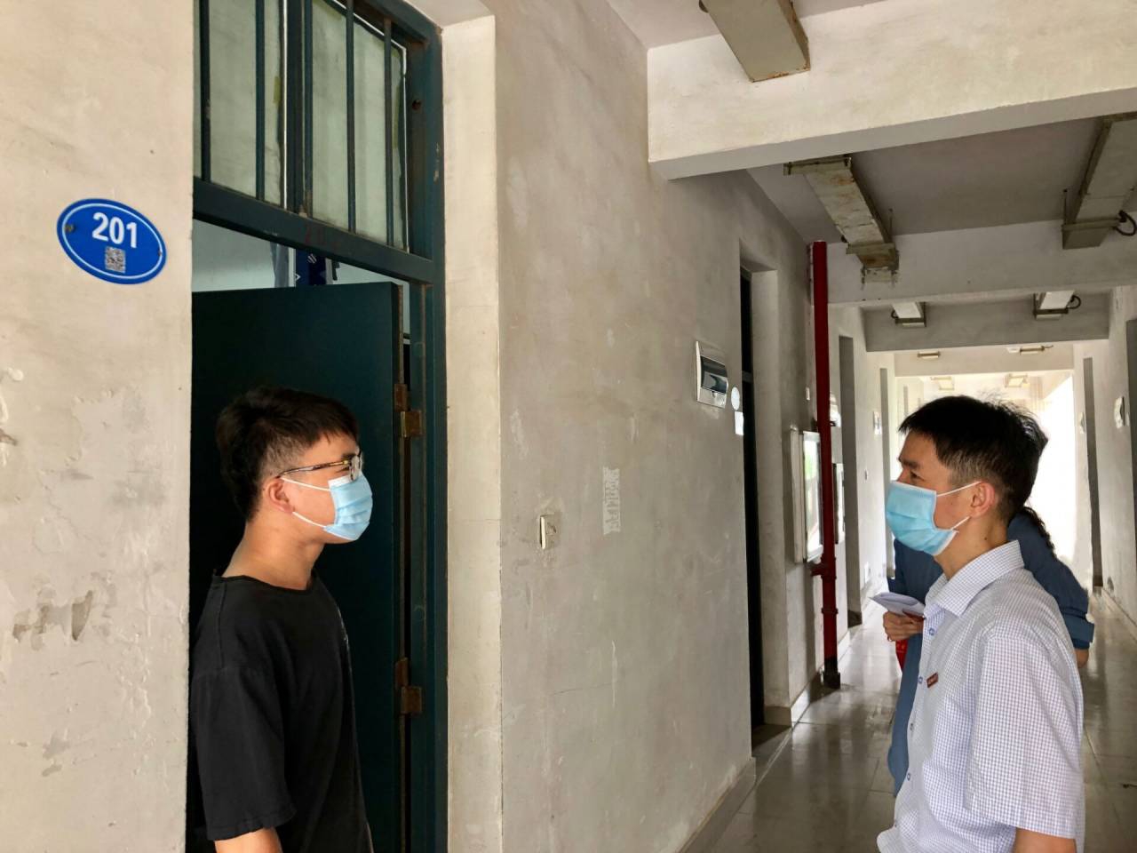 5月31日上午,院长黄茂兴、党委副书记颜隆忠与辅导员们深入学生宿舍。院长黄茂兴向大家顺利返校表示欢迎,与返校毕业生深入交谈,关心毕业生返校生活和未来工作意向情况。他还与辅导员们传达了全国“两会”精神,分享了他学习习近平总书记在参加内蒙古代表团审议时发表的关于“人民至上”的重要论述的体会,叮嘱辅导员们要以学生为本,确保学生平安返校、离校。党委副书记颜隆忠鼓励学生克服疫情带来的影响,珍惜在校的美好时光,在做好个人防护的前提下,努力学习,不负韶华。
