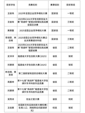 2025年,工商系承办了福建省高校企业竞争模拟大赛和第十五届全国大学生电子商务“创新、创意及创业”挑战赛校级赛,为学生成长搭台,激发了大学生的创新意识、创意思维和创业能力,营造了浓厚的创新创业氛围,推动人才培养工作迈向新高度。