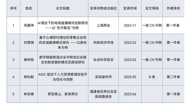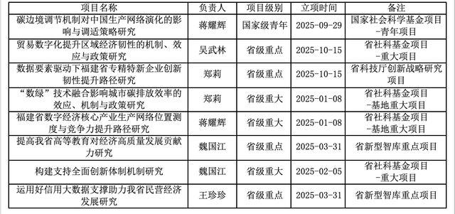 2025年,工商系聚焦学科前沿与产业实践,围绕专业方向开展科研工作,科研成果丰硕。新获得国家级项目1项,教育部1项,省级重大4项,省级重点5项,省级一般4项,2位老师获得福建省人力资源和社会保障厅高层次人才和青年优秀人才培养资助项目。在核心期刊发表系列成果,其中A类学术论文5篇,B类3篇,C类5篇。横向课题7项,资政报告20余篇,产学研协同与社会服务成效显著。积极开展学术交流与产学研合作,参与国际学术会议4次,助力学科建设与研究领域拓展。