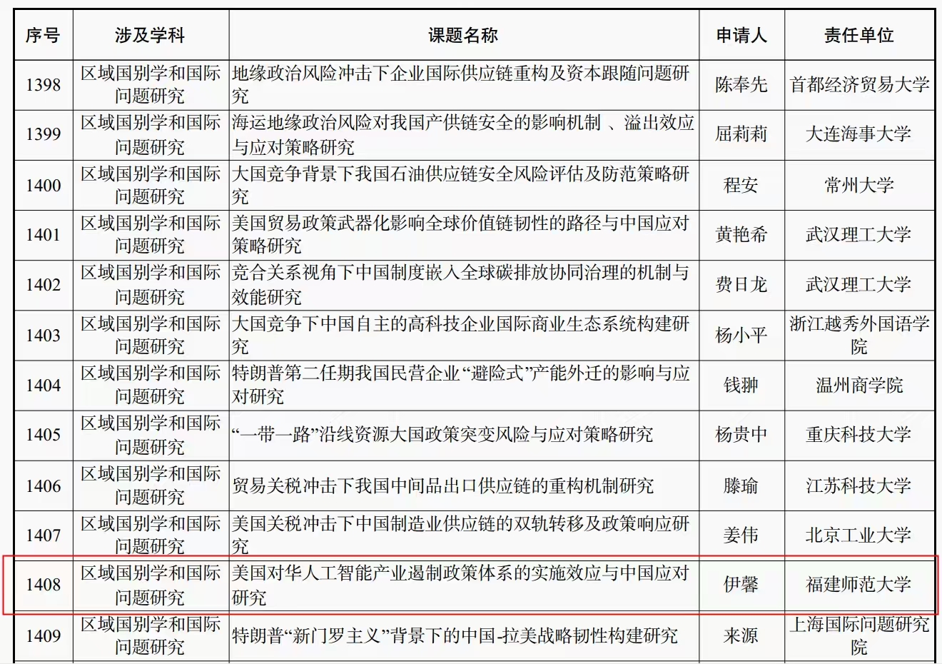 2025年,在科研项目上,伊馨获得国家社科基金一般项目立项,余官胜、林寿富、周利梅分别获得福建省政府发展研究中心决策咨询重大项目、福建省社科基金一般项目、福建省社科基金项目委托项目立项,陈伟雄入选2024-2025年度高层次人才和青年优秀人才培养资助项目,陈伟雄还获得福州市发改委委托项目一项。此外,伊馨主持的福建省新型智库项目重点课题鉴定结果优秀,课题研究报告获省政协主席批示。周利梅主持的福建省习近平新时代中国特色社会主义思想研究中心项目课题如期顺利结项。