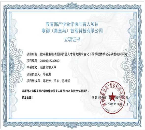 2025年,邱丽洪、闫玄分别获得一项教育部产学合作协同育人项目,郭黎霞、周利梅主持的校教改重点课题顺利结项。此外,专业课程建设水平再上新台阶。伊馨主持的《AI赋能、项目闯关:电子商务概论智慧课程改革与数字公民培养新范式》荣获福建省高校在线教育联盟智课优秀案例二等奖,该成果被超星公司作为模板展示给同行高校。