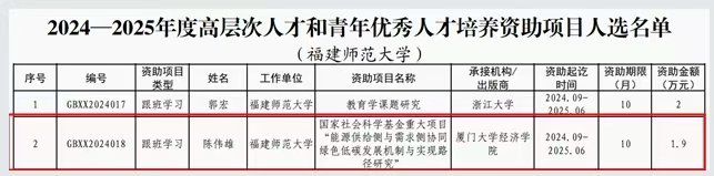 陈伟雄入选2024-2025年度高层次人才和青年优秀人才培养资助项目