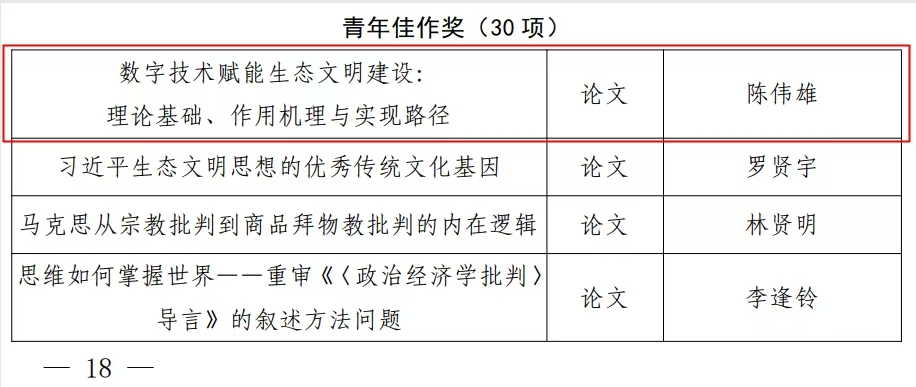 陈伟雄获福建省第十六届社会科学优秀成果奖青年佳作奖