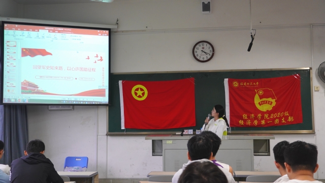为引导支部成员深入了解中国共产党领导中国军人在建军94年所作出的大业,我院2020级第一团支部在团支书毕佳欣的组织下于11月7日在福建师范大学旗山校区知明1-302举行了“回望军史知来路,以心许国踏征程”主题团立项活动。