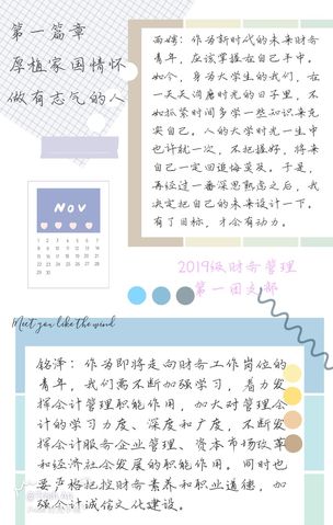 活动初期,团支部利用学习通平台进行视频学习和题目练习,深入学习中国会计文化,了解中国会计文化的产生与发展在中国社会经济发展与政治变革中的不可替代的作用。接着,团支书通过线上PPT展示,引导支部成员明确“十四五”时期会计改革与发展的新要求、新发展阶段会计改革与发展的新使命,线上参与互动讨论,进行科学分析,结合会计行业现状和趋势,着眼自身未来发展方向。最后,团支书组织支部成员制作电子手账,从职业操守、职业理念等角度思考手账内容:身为一名将要从事财会工作的青年,如何致力于推动我国会计行业持续高质量的发展,将自己的想法、志向呈现在手账中,作为立项成果进行分享展示。