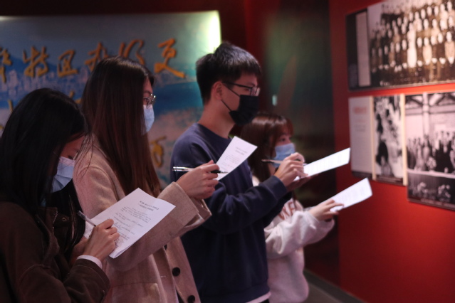 在参观档案馆之前,团支书给每位支部成员发放了一份试题,作为支部成员在参观学习时的引导,重点学习带有经济性质的历史,寻找并填上试题中挖空的历史经济数据,盖上档案馆的徽章打卡留念。支部成员们主要参观了“潮涌八闽厅”、“百年恰是风华正茂”和“遗韵记忆”主题档案文献展,共同见证了在中国共产党的领导下,中华民族和中国人民完成的一项又一项举世瞩目的成就。