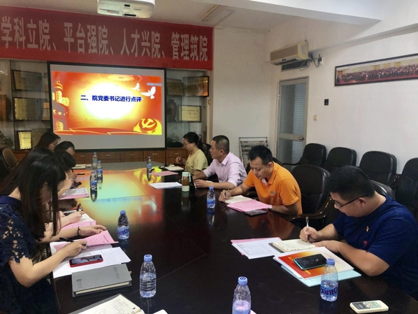 7月6日上午,经济学院召开2019年度学生党支部书记抓基层党建工作述职评议会,院党委书记林建荣、副书记颜隆忠,全体辅导员和学生党支部书记参加。